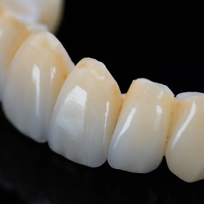 Keramikarbeiten wie Veneers, Inlays oder Vollkeramikkronen werden aus hochfester und lichtdurchlässiger Keramik gefertigt. Nach einem Abdruck oder Scan des Zahns wird die Keramik präzise geschichtet oder gefräst, um eine natürliche Optik und perfekte Passform zu erzielen.